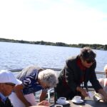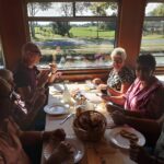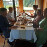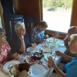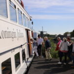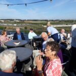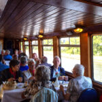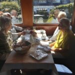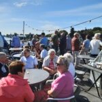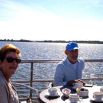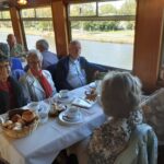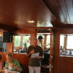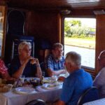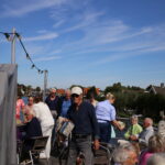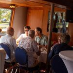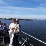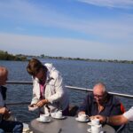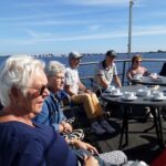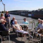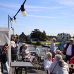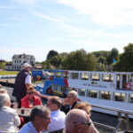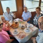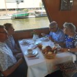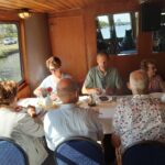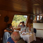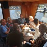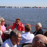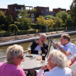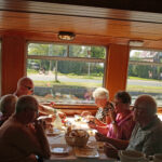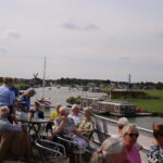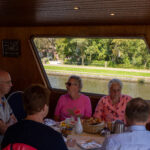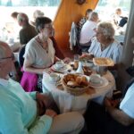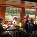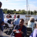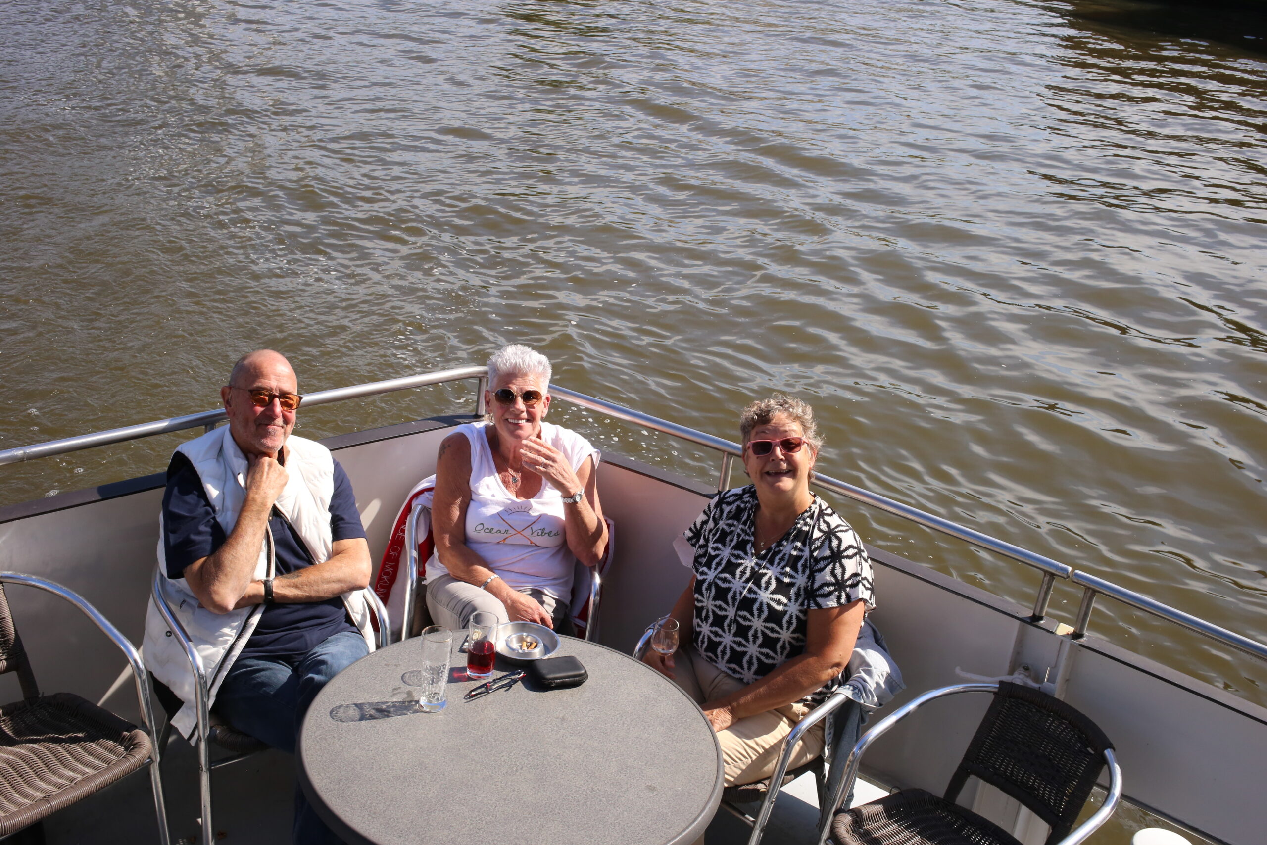 Op het bovendek konden alle aanwezigen genieten van het mooie weer en het voorbijtrekkende landschap. Rond lunchtijd verhuisden we naar het lagere dek, waar een heerlijke lunchmaaltijd werd geserveerd. Daarna keerden we terug naar het bovendek, waar later drankjes en hapjes werden aangeboden.